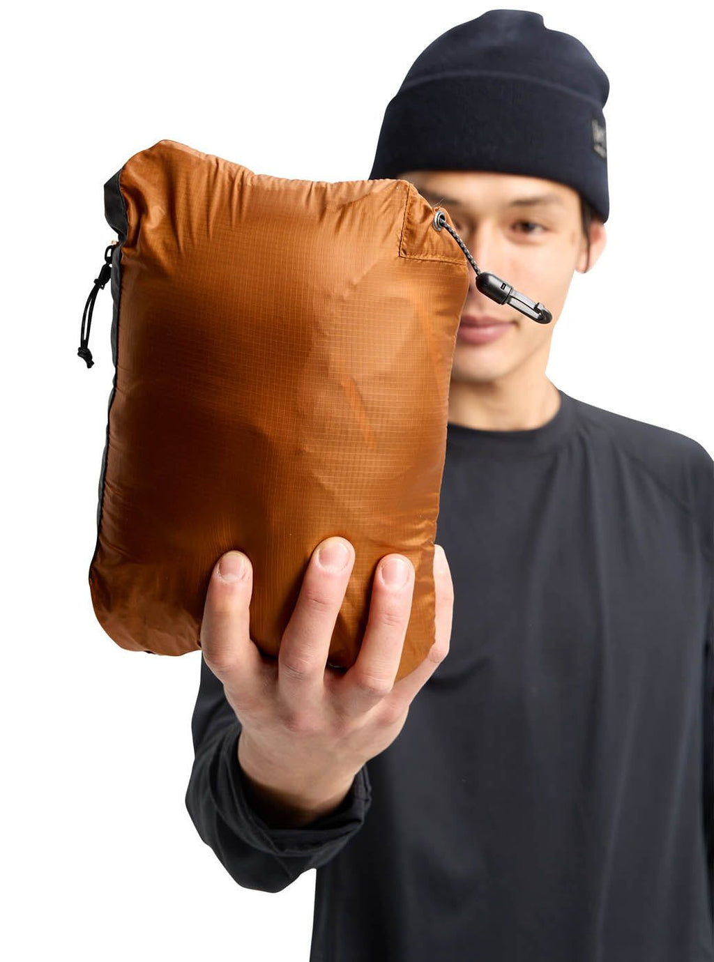 Lunch breaks, windy ridgetops, and cold mornings are all made better with the men's Burton [ak] Baker Down Jacket. It's that essential warm layer that you should always be within reach. You can wear it on its own or layered with a shell when you need maximum warmth. When it's not needed, just stuff it into its storage pocket, and it'll stow neatly in your pack.