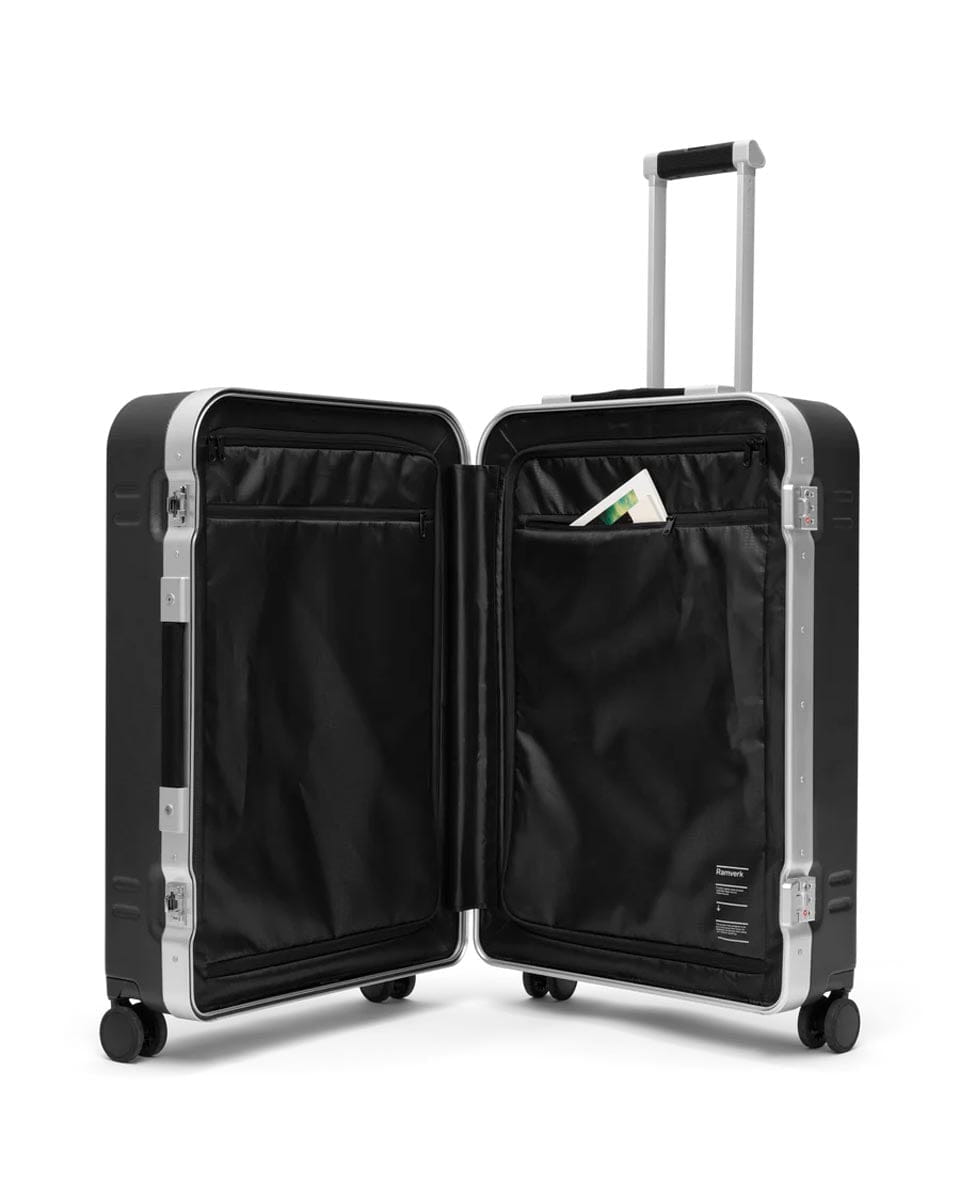 The triple award-winning Ramverk Pro Check-in Large suitcase is a fusion of two worlds. A protective aluminum frame comes together with lightweight polycarbonate shells in a zipperless design. Suits creatives needing to hit the road for two weeks or more.
