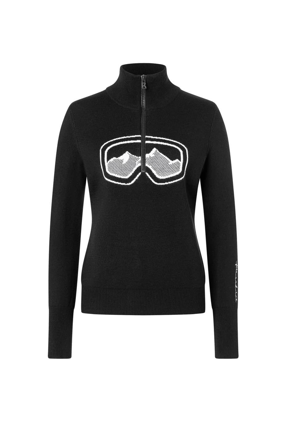 Stylish inlays characterise the Azra knitted troyer in a wool mix, harmoniously complemented by contrasting inserts on the sleeves. The classic collar with a short zip emphasises the typical look, while ribbed cuffs provide a comfortable finish.