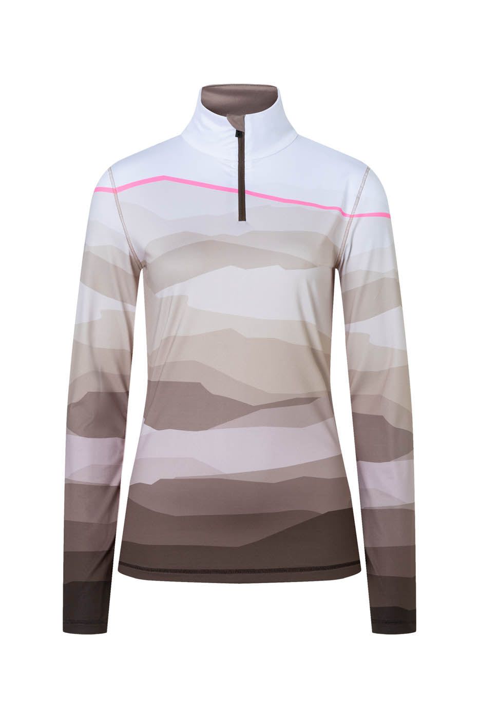 With its modern print design, the Ilvy first layer is a stylish update to functional looks. The style is emphasised by the typical stand-up collar and short zip, while overlock seams add subtle accents. The power stretch fabric provides a comfortable finish.
