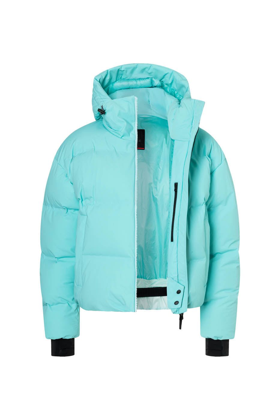- Inner snow skirt with press stud placket Elasticated hem with drawstring and stopper