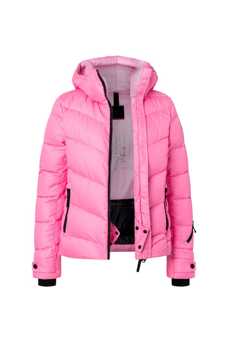 • Zip-up ski pass pocket on the sleeve Two side zip pockets One concealed zip pocket on the back One inside pocket