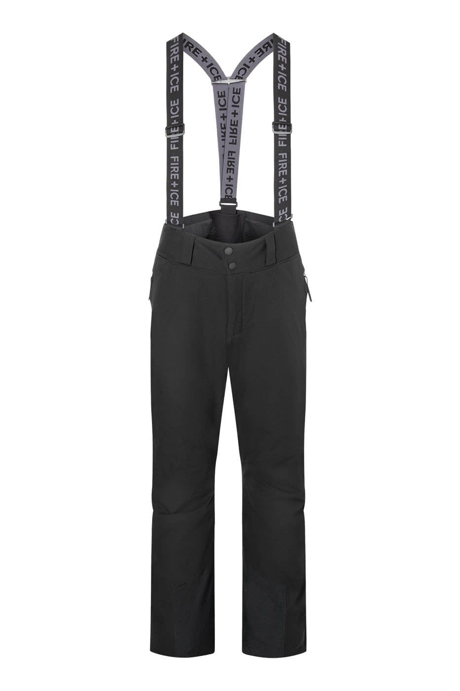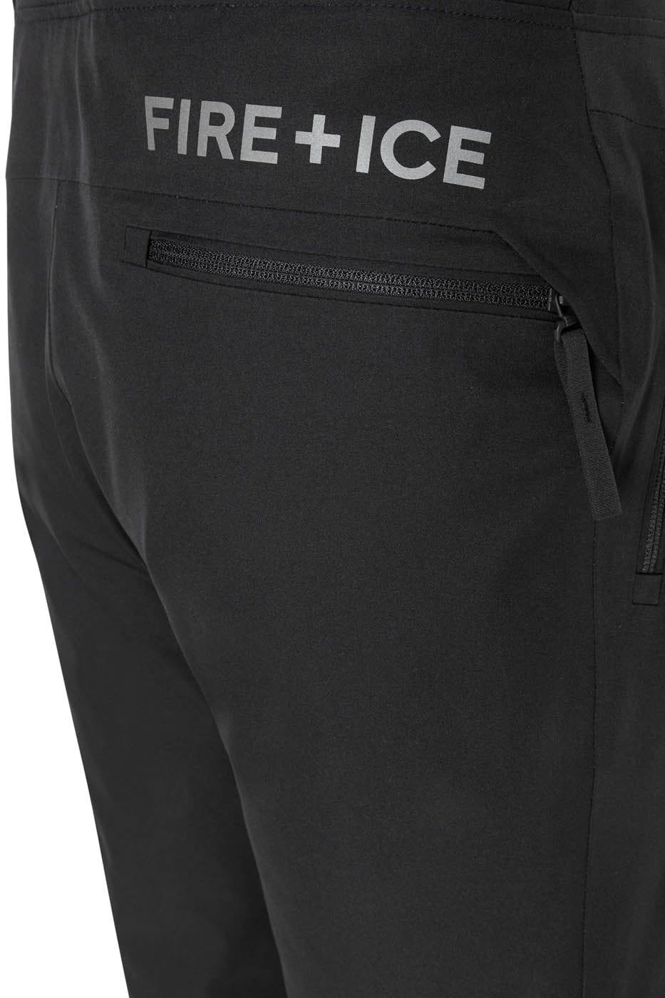 - Attached waistband with loops for belts up to 6 cm Lumbar protection with mesh lining Elasticated, adjustable braces in FIRE+ICE design