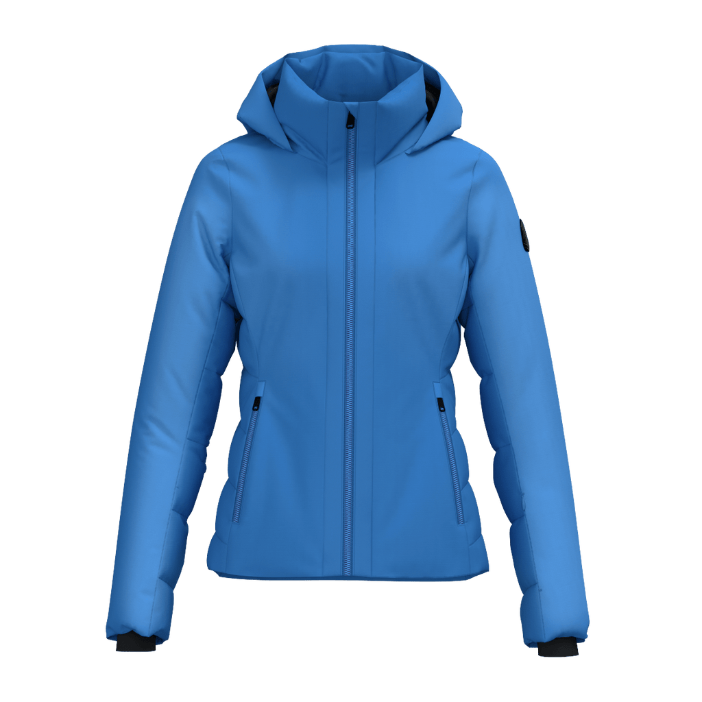 Fashioned from a durable polyester ripstop fabric with a 2-layer construction, the ASHLEY JACKET WOMEN offers sporty, contemporary and feminine style while shielding you from the elements. To keep you cozy, the jacket is insulated with pure white duck down and has 100% polyester padding in the body, sleeves and center front. To keep you warm and dry, this PFC-free jacket has taped seams, along with a fixed, adjustable hood and a fixed snow gaiter, and is made with water-repellent yarn from AMANN®. Waterproof SAB® VISLON® zippers on the center front and hand pockets also help to keep you dry while the ski pass pocket and inner chest pocket are finished with SAB® coil zippers. For additional comfort, the ASHLEY JACKET WOMEN comes with the Intelligent Apparel Membrane that offers the highest level of waterproofness and breathability, while the Moisture Transfer Microfiber technology helps fabric to dry quickly. The other features include sleeve cuffs with soft and stretchy inner cuffs and an adjustable hem with elastic drawcords.