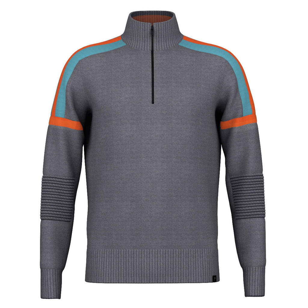 Sporty, masculine style is blended with luxurious comfort in the LYRIC PULLOVER MEN. Made from wonderfully soft 100% merino wool, with a fully fashioned knit, this sporty troyer pullover has a half zip construction with a SAB® VISLON® zipper, as well as a high ribbed collar and ribbed cuffs at the waistband and sleeves. Contrast stripes along the shoulders and upper part of the sleeves enhance the style of a pullover that also has a decorative rib pattern on the elbow parts.