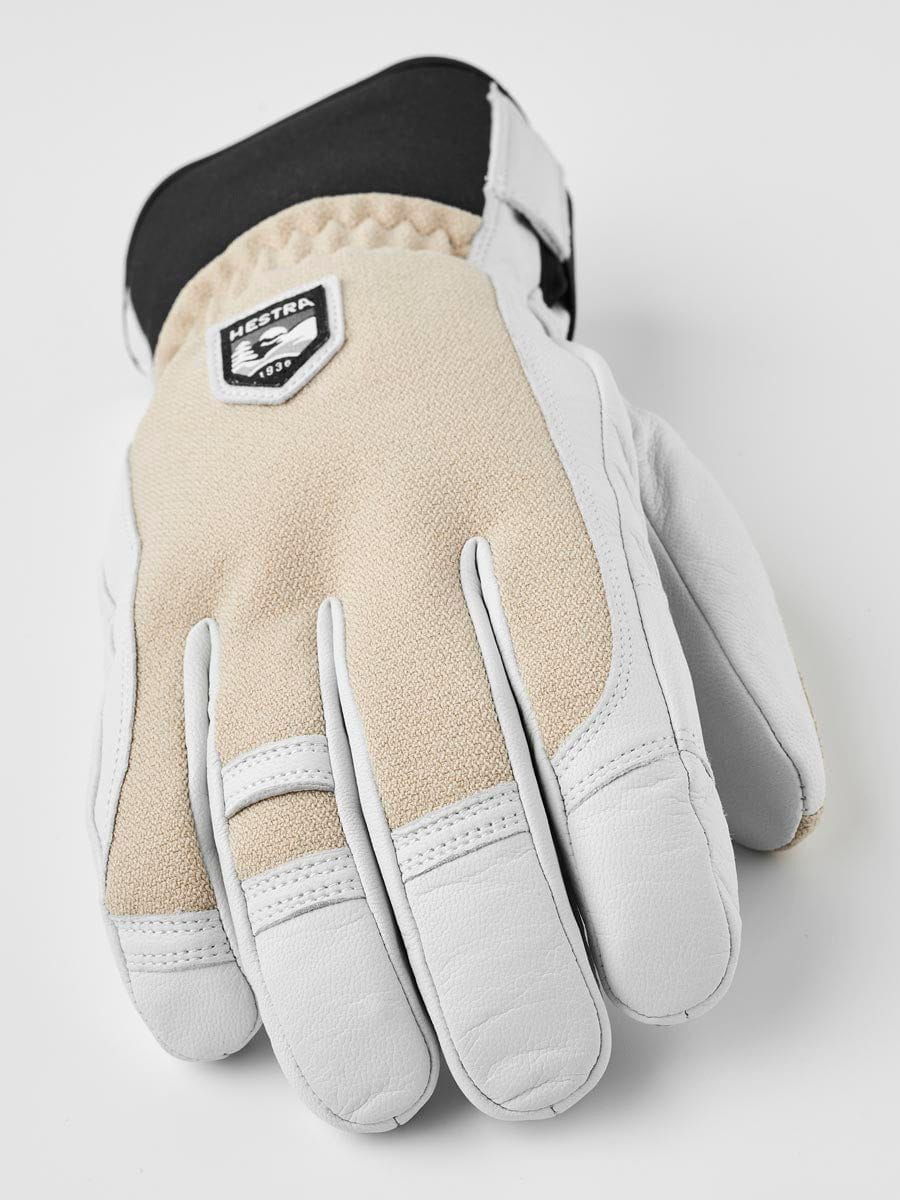 Army Leather Patrol is a warm, durable 5-fingers ski glove with clever functions. It builds upon the same robust concept as Hestra's Heli Ski model, but is designed to be worn under the jacket sleave with a comfortable neoprene collar that encircles the wrist. Fingers and palm are made ofimpregnated goat leather with outseams that provide comfort and a sensitive grip, while the backhand is made with flexible and weather resistant softshell fabric. A fleece liner with synthetic insulation keeps fingers warm even in low temperatures, and can easily be removed to wash or dry. You can also replace the insulation with a thinner liner to adjust the warmth if you are hiking and sweating more, for example. A wrist strap reduces the chance of dropping the glove if you take it off to adjust your equipment. A carabiner is also included along with an eyelet and hanging loop, providing several attachment options. A durable and reliable companion for those spending long days outdoors in the snow and cold, and who prefer to get away from the ski resort and its comforts. Also available in mitt and 3-fingers models, as well as a women's fit.