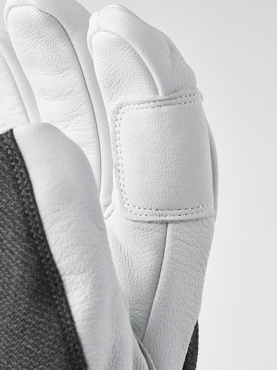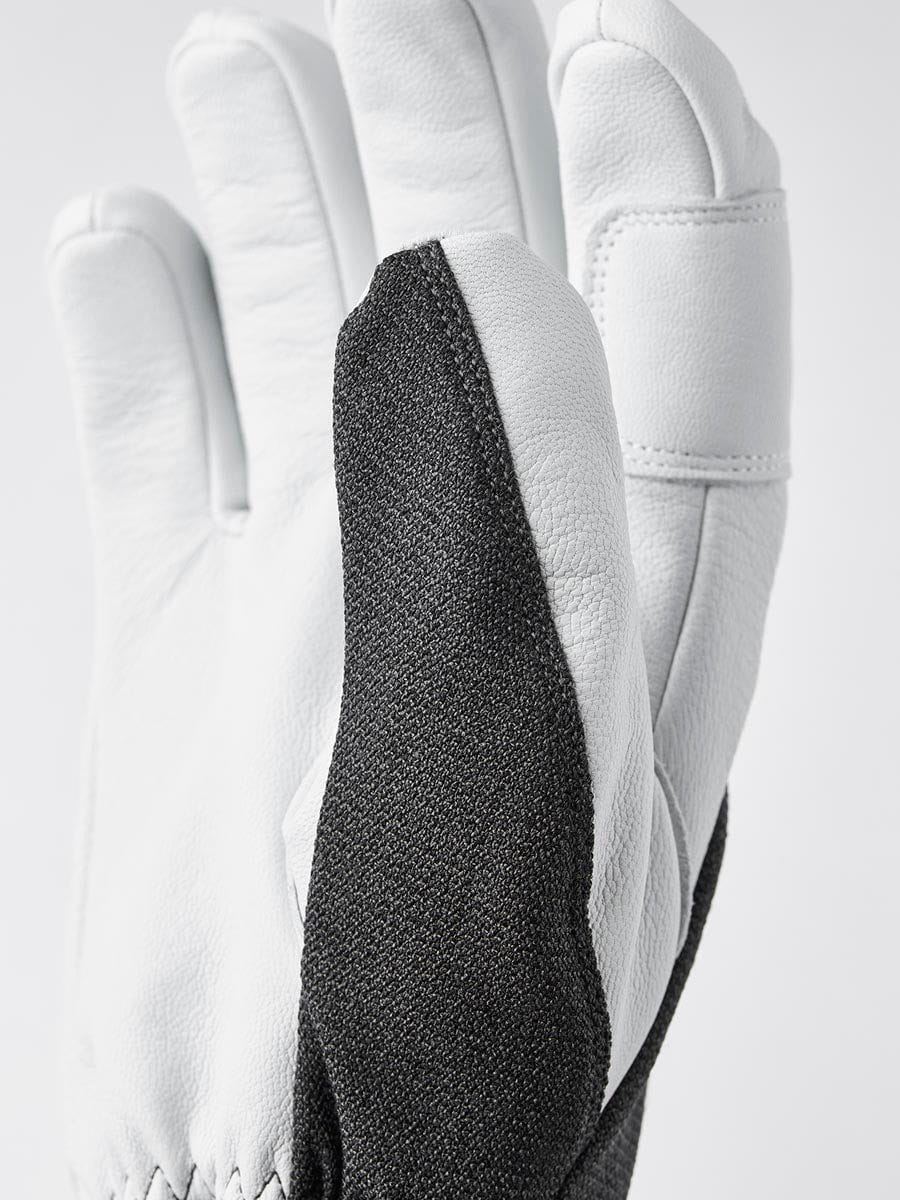 The Army Leather Patrol Gauntlet is a warm, durable ski glove for long, cold days in the snow. The palm in goatskin leather has outward-facing seams for good grip, while the backhand is in weather-resistant softshell fabric. A fleece liner with G-Loft synthetic insulation keeps fingers warm even in low temperatures, and can easily be removed to wash or dry. A number of well-thought-out details make for superb functionality on the mountain. In powder snow, you'll appreciate the high, protective cuff, while the wrist strap reduces the risk of losing a glove. A carabiner and eyelet let you hang the glove with the opening facing downwards to avoid it filling with snow if you take it off. A hardwearing, reliable companion happy to accompany you off the beaten track, away from the ski lifts and comforts of the ski resort. Also available as a mitten.