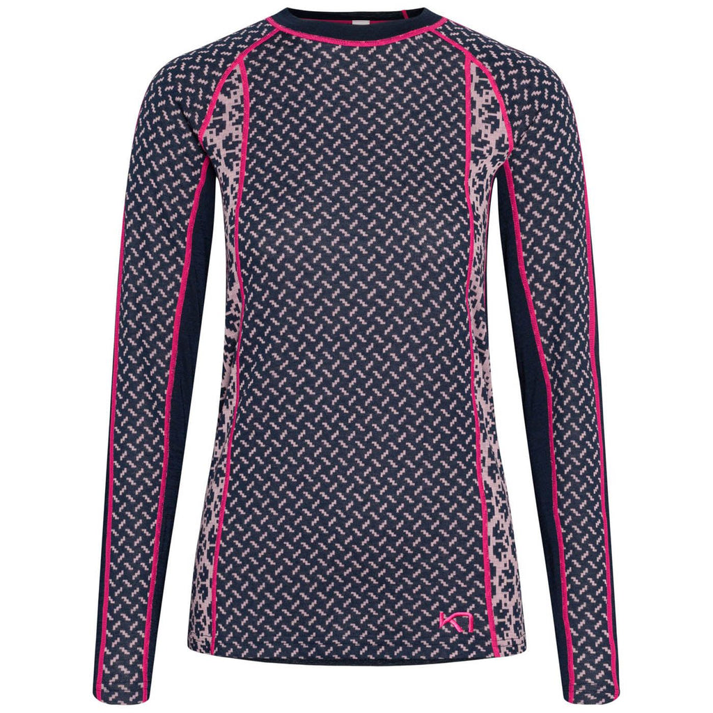 The Kari Traa Lekker Long Sleeve is your new go-to adventure partner, blending synthetic and Merino wool for body-mapping warmth, quick-drying comfort, and a playful pattern that moves with you.