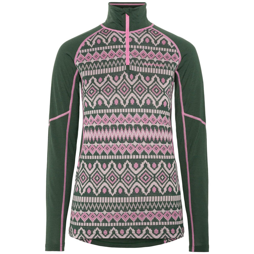 The Kari Traa Malia Half Zip is a warm, quick-drying, and ultra-comfortable merino wool/Tencel blend base layer featuring a high collar and strategic moisture wicking.