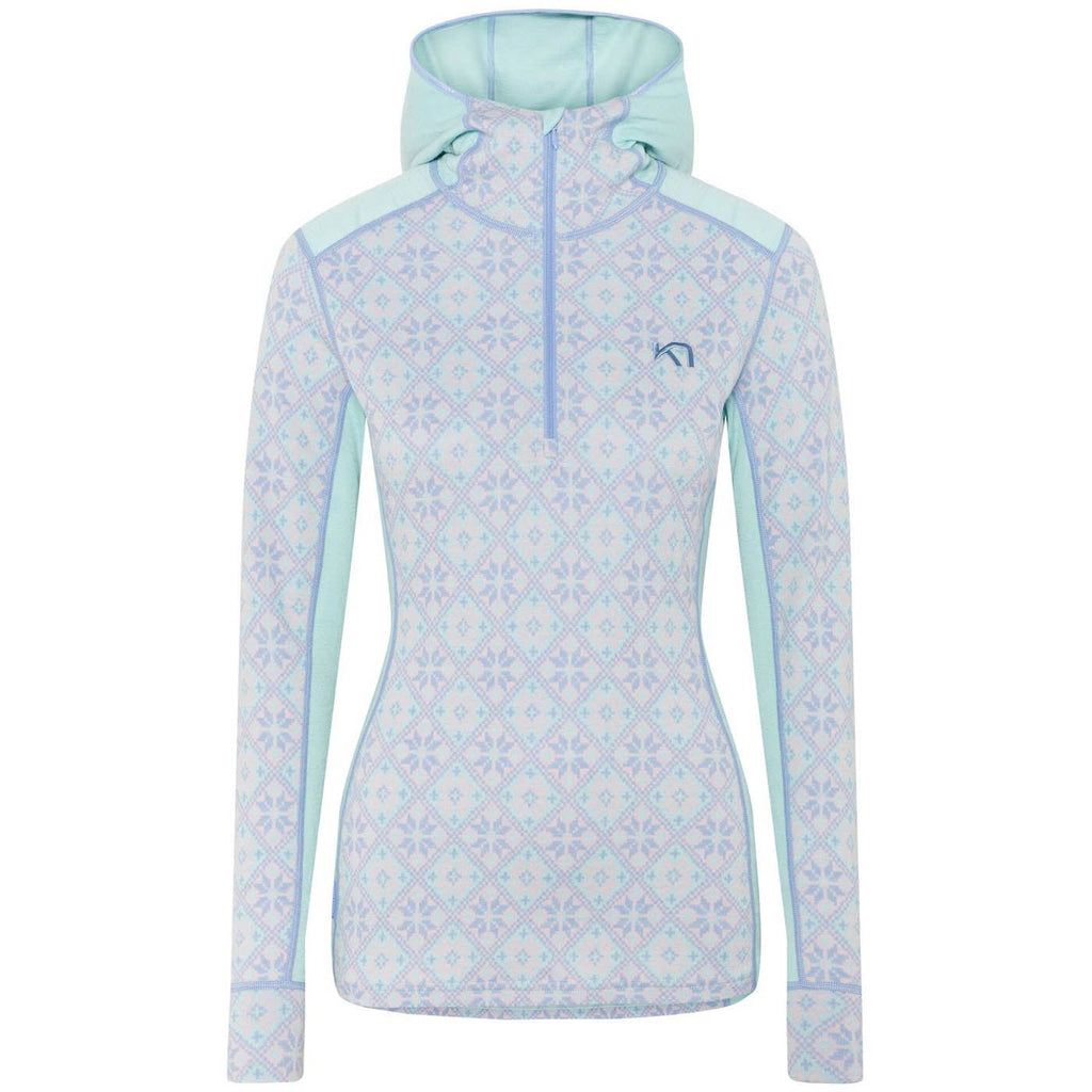 The Kari Traa Rose Hood is a soft and warm merino half-zip base layer with a thin hood that fits under a helmet or beanie for added insulation. With a feminine, Nordic design inspired by the traditional Norweigan tapestry hanging in Kari Traa's family cabin, this midweight top blends form and function with 4-way stretch, natural odor-resistance, and breathability.