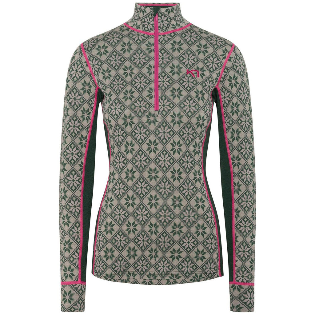 The Kari Traa Rose Half Zip is a soft and warm merino base layer with a feminine, Nordic design inspired by the traditional Norweigan tapestry hanging in Kari Traa's family cabin. Combining ethically sourced wool and 4-way stretch, this midweight layer offers next-to-skin comfort, natural odor-resistance, and breathability. The zip collar allows increased ventilation for personalized temperature control.