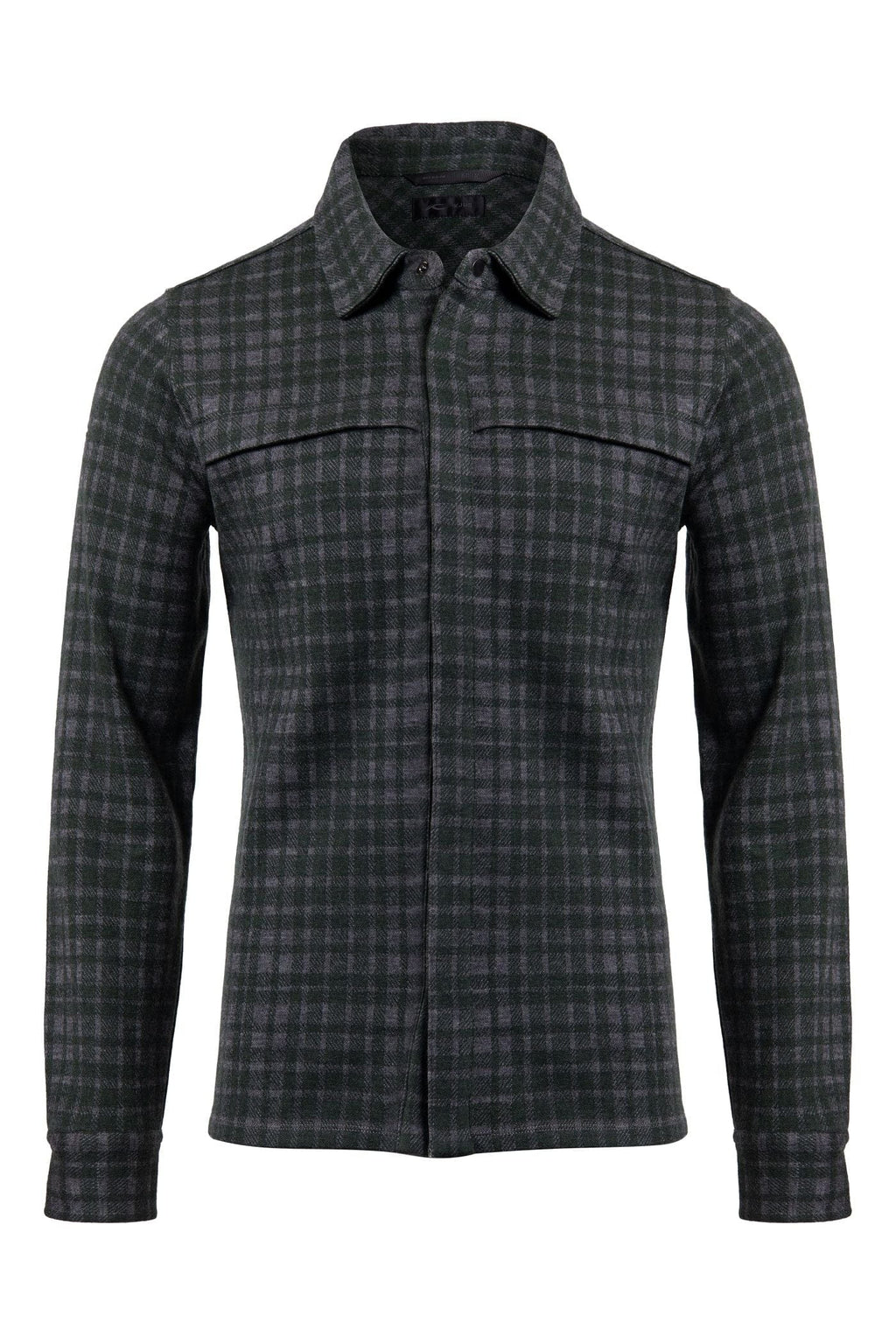 A modern twist on the classic flannel, this wool blend shirt jacket offers natural stretch, comfort, and warmth. The concealed zippered chest pockets, snap front closure and sleeve cuffs add eye-catching details.