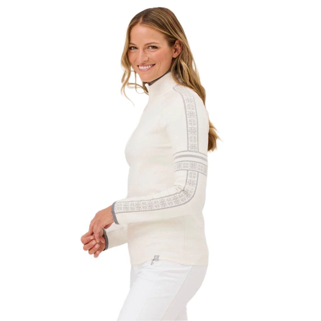 Take on winter with a little flair. Glacier’s bold sleeve jacquard and slim fit turn a classic sk sweater into something special—while keeping things cozy and breathable from morning runs to mountain fun.
