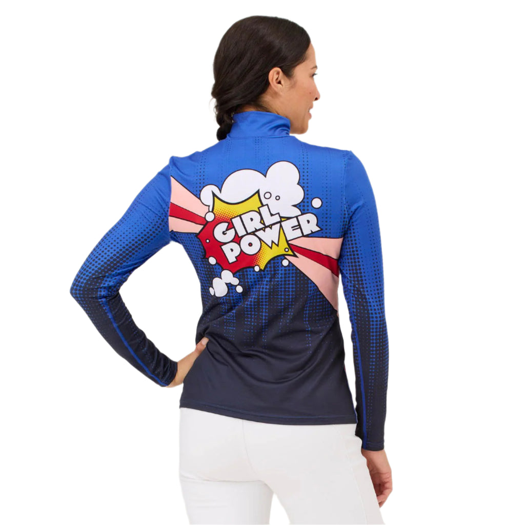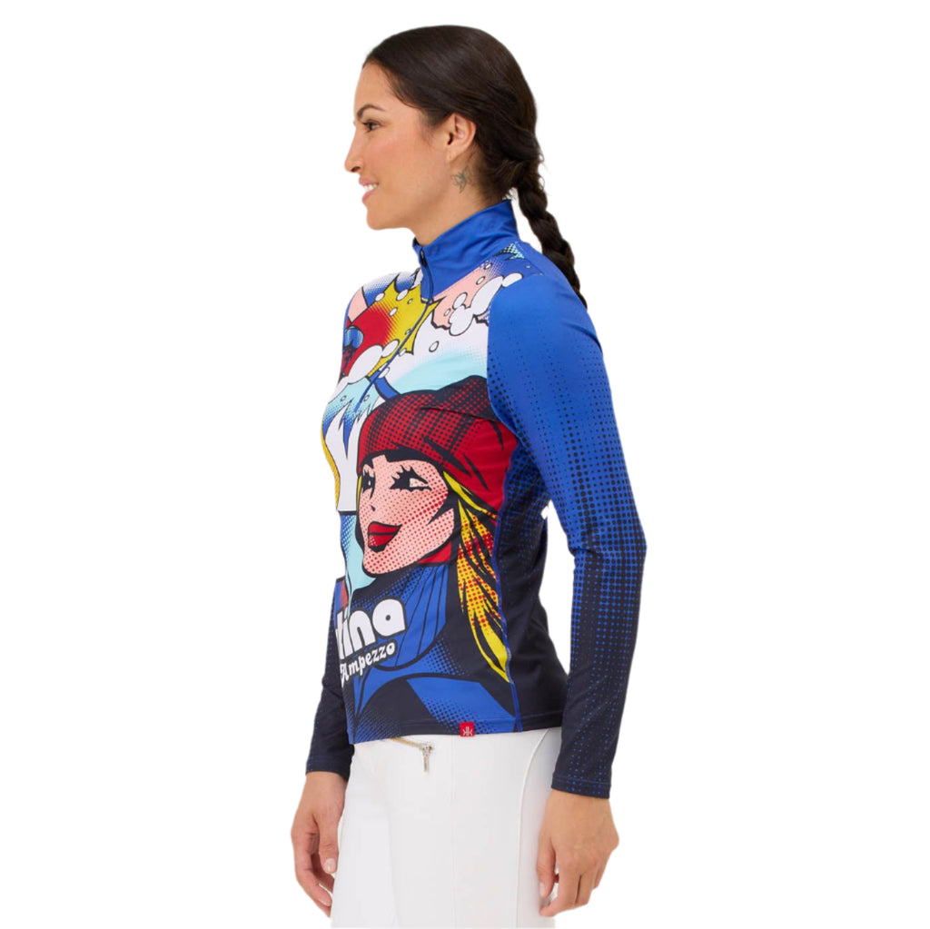 Color, movement, and comfort in one bold base layer. The Pop Art Top blends breathable, quick-dry fabric with a slim fit that hugs just right. It’s finished with a vibrant, ski-inspired print that pops whether you’re layering up or cooling down.