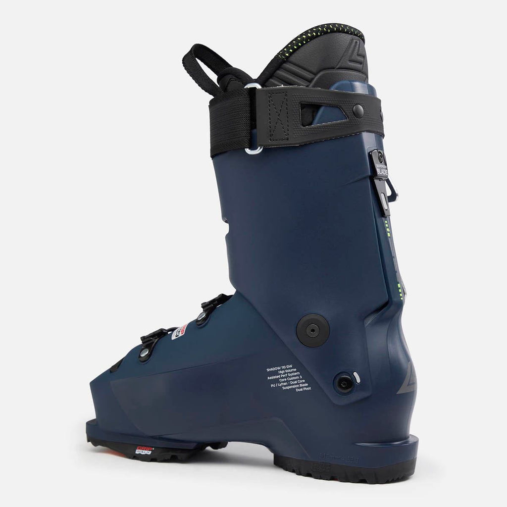 More power and more control with less energy. The Lange Shadow 130 LV ski boots bring a new level of power transfer, vibration absorption and comfort to all-mountain skiing. Our Assisted Performance System amplifies your input to the boot through the mechanical advantage of our Dual Pivot and Suspension Blade technology. The design boosts input by up to 26%, giving you more power and control with less energy. The boot's clean, consistent flex is combined with increased shock absorption through the shell for enhanced snow feel and contact. Like a full suspension bike, the combination lets you ski longer and more efficiently. Together with a 130-rated flex, this boot gives expert skiers every advantage for skiing any terrain on the mountain. At 97mm wide, our low-volume last complements the thermoformable liner for a comfortable performance fit.
