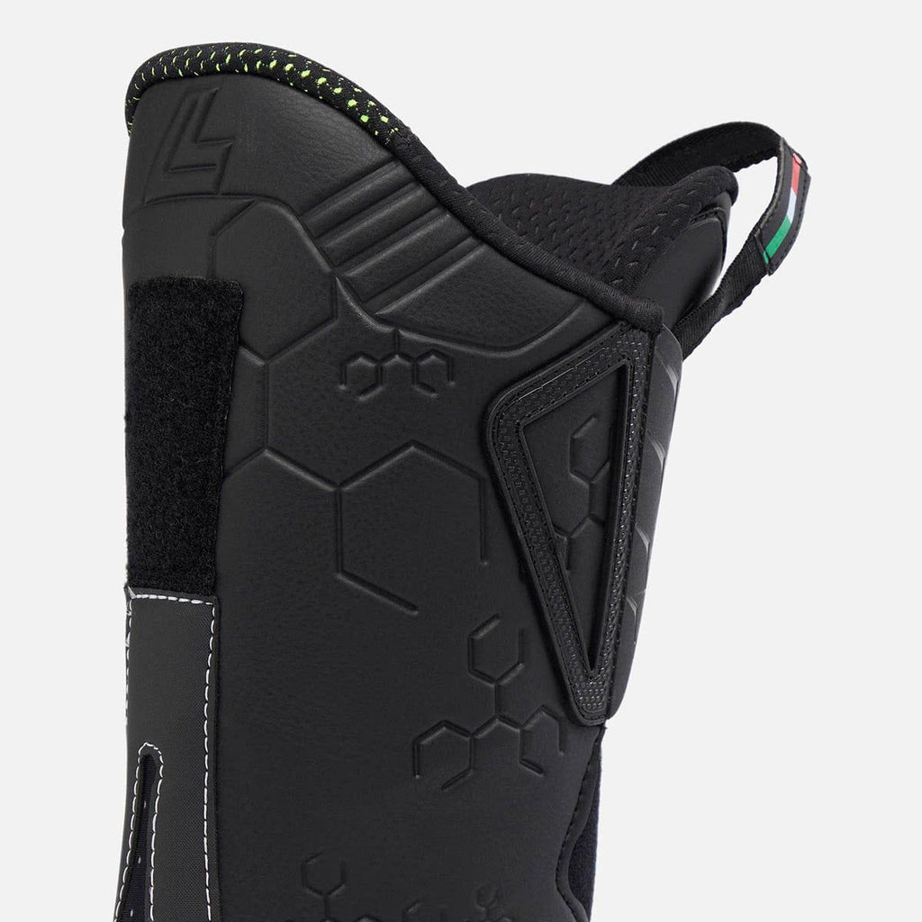 A one-piece liner with an asymmetrical toe box creates a uniform, pressure-free fit from the toe box to the cuff for the most comfortable fit possible.
