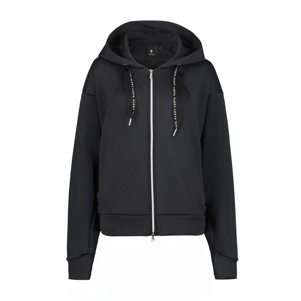 Luhta midlayer for women. Oversized fit. Drawstring hood adjustment. Cuffs with thumbholes. Two zipped front pockets. Zip front. Decorative knit. Logo label. The 4-way stretch material stretches in all directions giving maximum freedom of movement. When designing this A.W.S. ACTIVE product, special attention has been paid to functionality and comfort, so the product is suitable for both active and casual use.