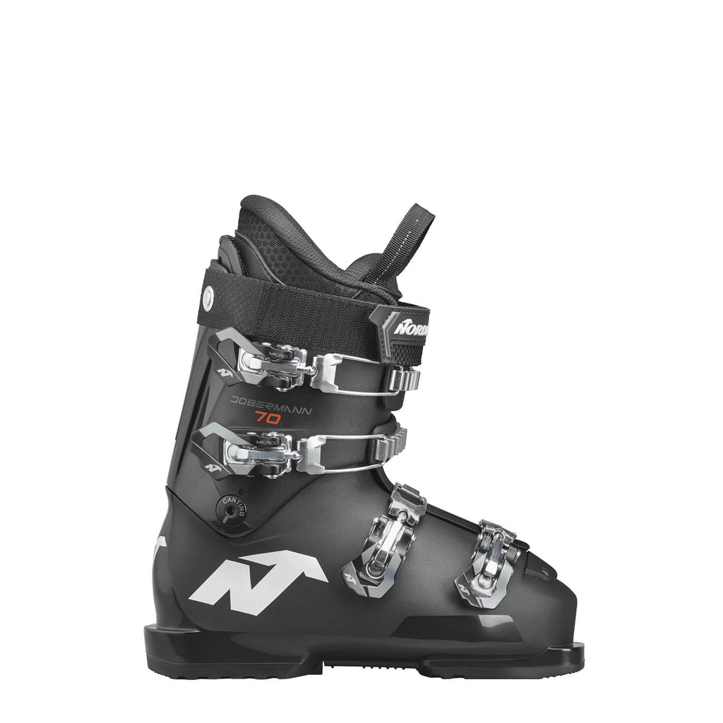 Young skiers who charge hard need boots that fuel their progression—not hold them back. Driven by this belief, the Dobermann 70 helps young racers and all mountain rippers push their limits and maximize their fun. Inspired by our legendary Dobermann collection, this junior boot features a smooth and balanced flex that offers unrivaled response and precision. Its plush liner keeps feet comfortable from first chair to last. Powerful and confident, the Dobermann 70 helps young skiers reach their potential and amplify their fun—be it on the race course or far from it.