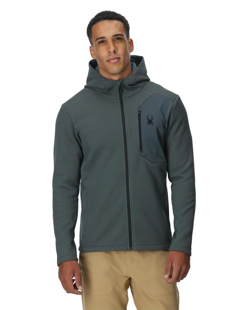 The Bandit hooded jacket blends a classic alpine sweater style with a modern twist. Lightweight polyester sweater knit bonded to anti-pill fleece, stretch side and arm panels, and a sleek chest pocket add functionality to this versatile layer, great for a day on the mountain.