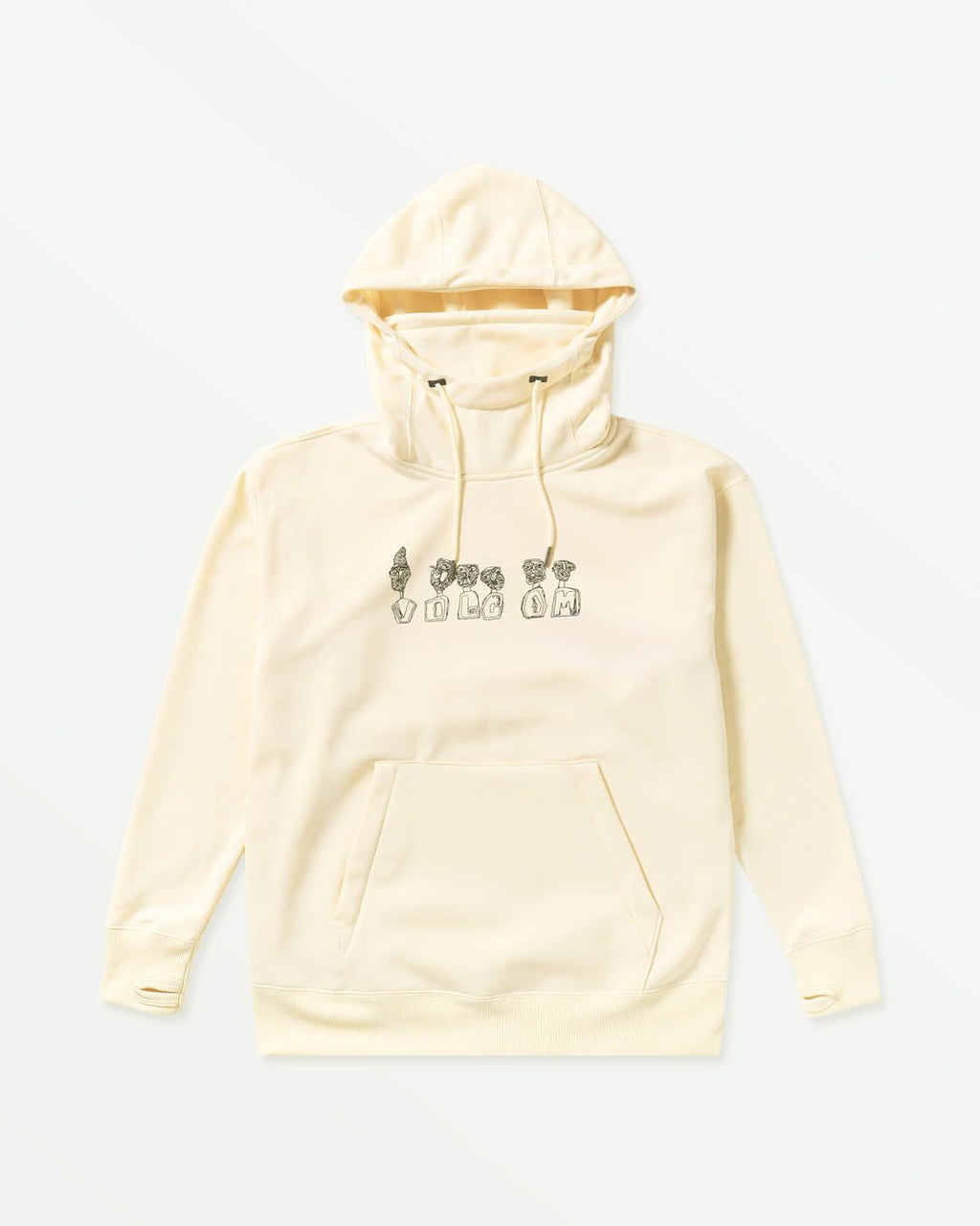 Women's Fleece HoodieRelaxed Fit290g Hydrophobic FleeceDrawcord Cinch HoodIntegrated Neck WarmerZippered Handwarmer PocketThumbholesRibbed CuffsRibbed HemWarp Snow Screenprint at Chest